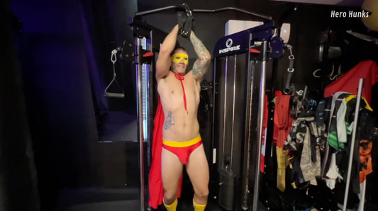 An age of shadow vs. light, good vs. bad, hero vs. villain. This is Hero Hunks, where impossibly muscular bodies flex and pose in suits of Lycra and spandex, stretched tightly across muscular backs, chests, thighs, and more. Hero Hunks offers scheming villains, daring escapes, bitter rivalries, strength, domination, superpowers being used and abused, and, of course, heroes fighting for what’s right.
