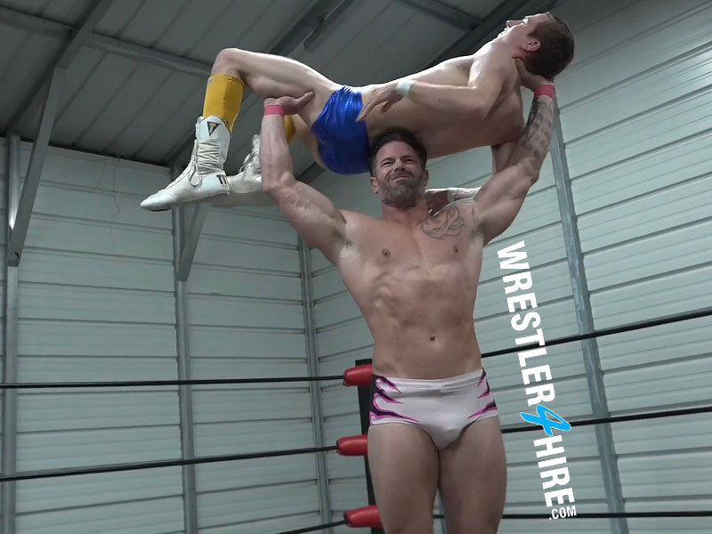 Joey spares no power move on AJ from bearhugs, to full nelson, to full on body slams to the mat. An extended back breaker transforms into Joey bench pressing AJ well over his head, only to unceremoniously deposit him on the mat a moment later. Boots to the crotch, shoulders to the mid-section in the corner and even a good old-fashioned airplane spin all are in Joey's repertoire as AJ offers little to no resistance to the big man. It is almost as though Joey was swatting a fly-the ease with which he works his many moves on the young AJ.