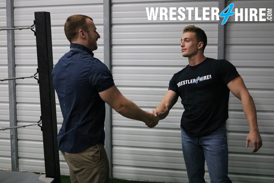 Two muscular men, disagreements over who is the better wrester and some tension regarding a girlfriend. Sounds like these muscle boys have a score to settle. Austin was a trainer for Scrappy early in his wrestling career. While Scrappy was gone, Austin took the opportunity to “train” Scrappy’s girlfriend. Suffice to say, Scrappy is NOT happy about this. The irony is there is a wrestling ring right behind them. Sometimes life just works out perfectly as a wrestling ring is the best place for two wrestlers to settle a score. Something else that worked out perfectly was the opportunity for Scrappy to nail Austin on the side of his head with a roundhouse kick. DAMN! He follows it up by shoving Austin’s head into the ring post. That’ll have you seeing stars!!!