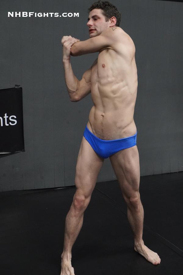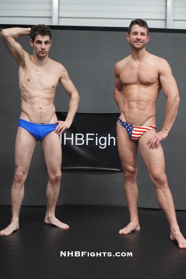 Anybody who has seen the individual work of Blake Starr and John Wolfboy will be able to acknowledge what a perfect pairing this is! Both men are long, lean, tall, tones, fast, aggressive, and dead sexy. Blake Starr shows off his skills in a pair of miniscule American flag speedos, demonstrating pushups and agility. John Wolfboy pivots and stretches with calm focus, demonstrating us amusing facial expressions as he surveys the space once again. Both of these guys are outstanding grapplers. This is gonna be good!