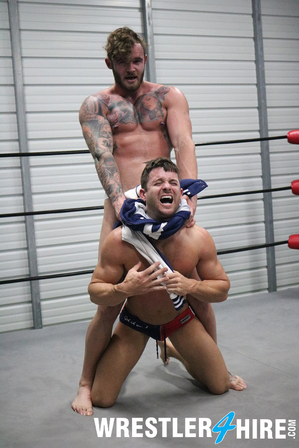 It’s pure mayhem for Blake. Xander tosses him around the ring like he’s a toy. Blake is gasping for air and Xander appears as if he isn’t even warmed up yet. As Blake is sitting in the corner, Xander decides to really torment him and puts his ass in Blake’s face and shakes it around. After more punishment, Blake grabs the jacket as if he’s willing to give it back. Xander holds his arms out and tells Blake to put it on him. Blake starts to do it, but then quickly grabs at Xander. Much like everything else he’s tried so far in this match, it fails miserably, and he is once again at the mercy of Xander.