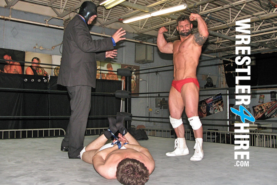 Brad has him begging for mercy in a Boston Crab. Johnny screams out that he’s just a banker. Based on his track record at W4H, we know he’s not much of a wrestler. Brad goes through Johnny’s pants and pulls out his cell phone. He takes some selfies of him with Johnny in various holds. He notices Johnny has a text from Max Quivers, whom Johnny identifies as the President of the bank. After receiving the selfies of Brad torturing Johnny, Max calls and talks to Brad. Brad explains Johnny’s lack of professionalism and that he’s stripped down in his ring. Max decides to come down himself. It isn’t long before Johnny agrees to pay three months, then six months, a year, and finally, 18 months. Brad uses to rag to put him to sleep again, then hogties him with his ugly tie. Enter Bank President Max Quivers. A brief conversation later, Johnny is fired!