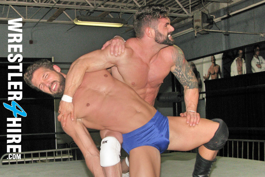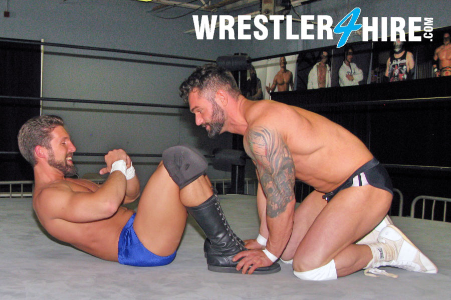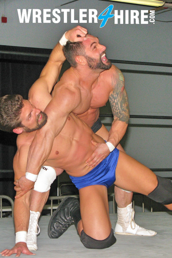 Brutal Brad Barnes versus Ravishing Ronnie Pearl. We can’t decide which of these two muscle hunks is the sexiest. Smooth, sexy bodies with rippling muscles, manly beards, and plenty of “personal assets” in their trunks. Trust us, there is no shortage of muscles, technical wrestling skills, very tightly packed trunks, as well as testosterone. Admittedly, we picture these wrestlers working together as a tag-team more than as opponents. Can’t you just picture these two dominating and punishing two young jobbers? Damn, now we’re totally distracted.