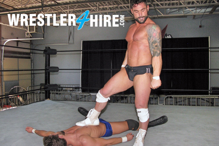 The ab torture goes back-and-forth, back-and-forth, back-and-forth. Wrestling fans with rock-hard abs will be flinching. Those of us with softer mid-sections keep our arms covering our guts the whole time. The ab punishment is endless, and both of these tenacious wrestlers dish out and receive immense amounts of pain. If you’re hoping for a heel/jobber match, you’ll be disappointed. If you love watching two stunningly sexy men beat the hell out of each other, this is the match for you. In the end, neither man will submit to the other. The winner ultimately puts the other out in a sleeper. To add insult to injury, he nonchalantly places one foot onto the chest of the loser and flexes his gorgeous muscles while slowly counting to 10. As if that isn’t sexy enough, it appears as if his trunks are packed even more tightly at this point, indicating he’s “happy” with his victory. Damn, we’d love to follow him back to the locker room.