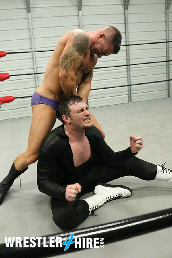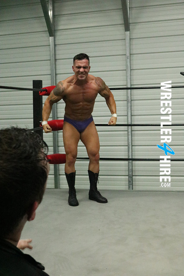 Braden is one sexy man! He’s in the ring, Championship Belt on his shoulder, bragging about his 13 years of wrestling experience. He admits that Nick Justice has been running through his opponents at W4H, but says he isn’t ready for this match. This is some of the most serious trash-talking we’ve seen. Nick talks about having 12 years of wrestling experience and that he became depressed and opened his dungeon when Braden previously beat him. He further talks about how he’s losing weight and will get shredded again. He talks about eating the souls of his victims. Braden appears to have a slight look of fear in his eyes. As Braden puts down the belt, Nick attacks from behind and the match is on.