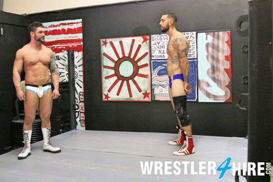 Try not to grin as these two handsome dudes with muscular bods take their fight to the next level by adding a little something extra. Facing off in boots and speedos, they can barely contain their own smiles as they roll and rumble in an effort to get those boots off so they can engage in some highly effective tickle torture!
