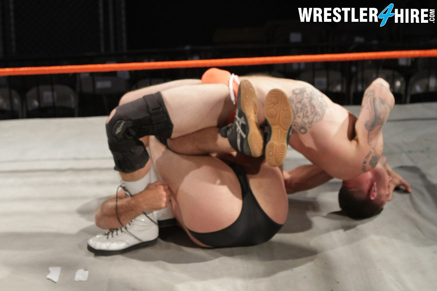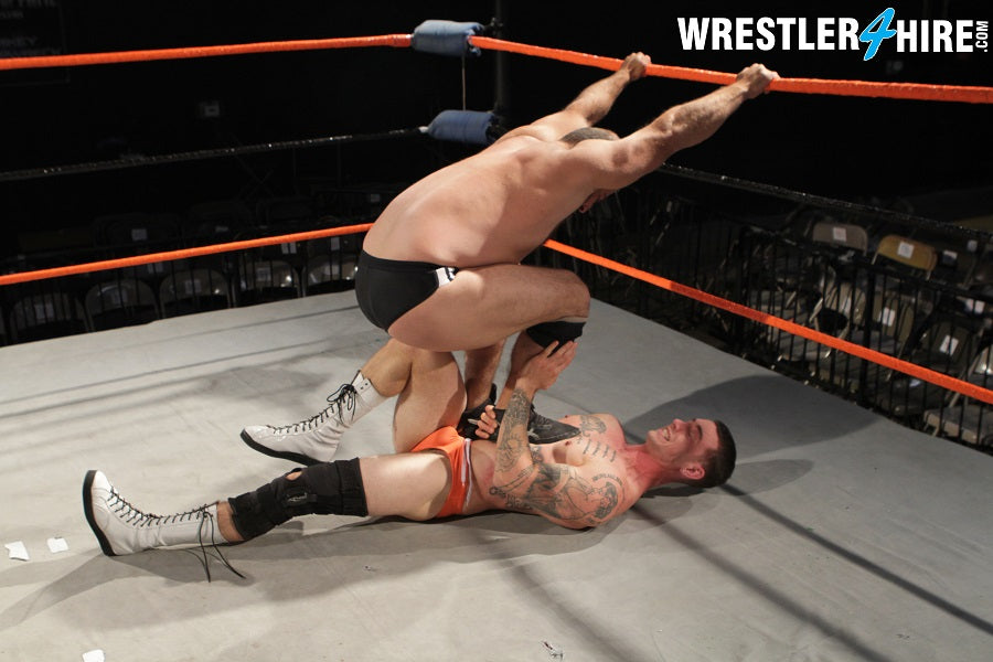 Soon Bennett is hanging upside down from the corner like a bat, taking kick after kick after kick, and crawling miserably into his opponents arms, only to take knees and fists to the gut in ways that leave him screaming in agony. Full nelsons and figure fours where you can actually hear the skin tightening against skin...brutal floor grappling...sleepers...and a camel clutch you have to see to believe. Genatto leaves welts and deep red finger marks all over the newbie’s untested body in this well-deserved punishment battle.