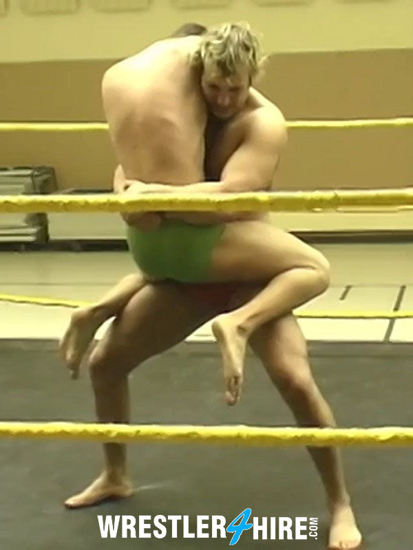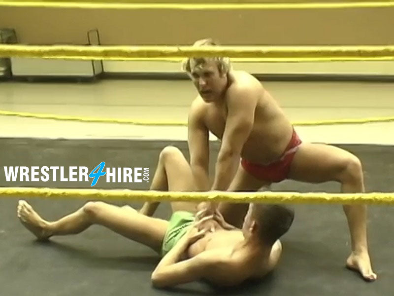 This is a wonderful extended beatdown match. Rolf suffers beautifully as Caleb demolishes him, his moans of pain are delightful. There are a number of great holds and, in the back half of the match, plenty of ballbusting and action using the ropes. A few brief flashes of foot domination are also highlights for me.