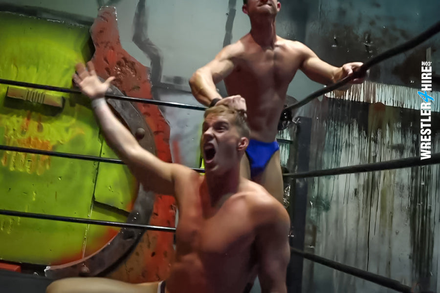 Blake Starr may be a lean, sexy stud. But he ain’t nothin’ compared to yours truly. Sometimes I think these cocky wrestlers forget who I am. Me and Blake dig into each other with some sweet, pent up hate. Something about this dude just makes me want to choke, slap, and beat the hell outta him. I dig my bare foot into his neck, only to get my nuts clobbered. Blake rips by hands away from my junk and bounces on my balls, making me grind my foot into his junk in return in a rough standoff.