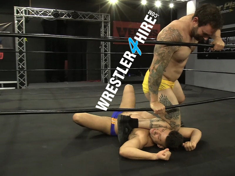 And show him he does. From the onset, Chace is all over Jonny, as if trying to make up for all the lost time from his time away from the ring. Heavy blows to the back, standing on Jonny's midsection, headlocks in his vise-like arms and a Boston Crab all have Jonny breathing heavily and down for the count. But Chace is just getting started. Using his bulked up physique to it's utmost, backbreakers and devastating shoulders to Jonny's back in the corner all further the pain Chac is dishing out.