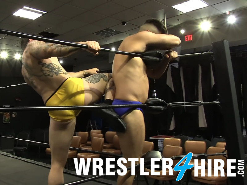 It has been a while since we have seen Chace LaChance in a Wrestler4Hire ring. I am happy to say that we see him here again, looking just as muscular and jacked as we all remember him. An avid arm wrestler, if it is possible, Chace's upper body is even bigger than what you may remember. Jonny the Body is in the ring doing a handstand, something that Chace is thoroughly unimpressed with, declaring, "This is a wrestling ring, not a circus." And Chace intends to show Jonny exactly what happens in a wrestling ring, at least when you face him.