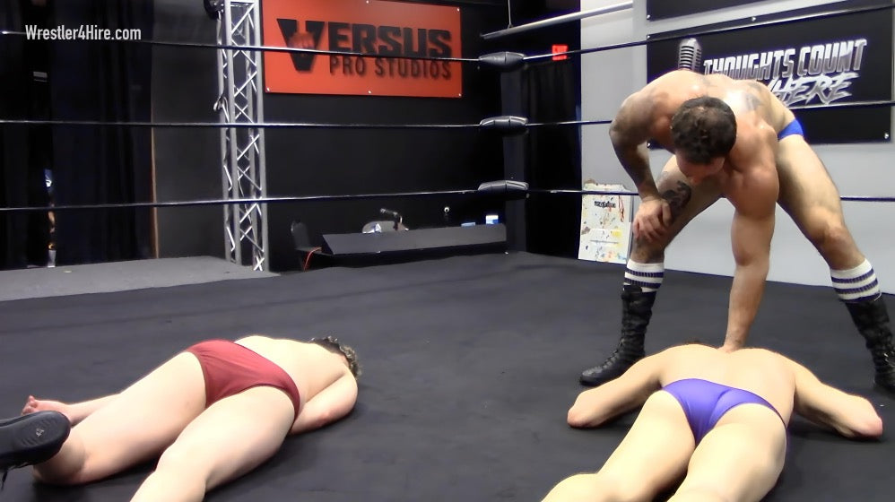 Great match! Chace LaChance continues to be one of THE sexiest wrestlers at W4H. He's sexy and oozing sexual energy in this match, with an excellent choice of wrestling trunks highlighting everything we expect from a gay underground wrestling match. His furry chest is always an eye catcher! He seems to have had great fun with the two opponents. Now for a good, sloppy oil match featuring Chace LaChance.