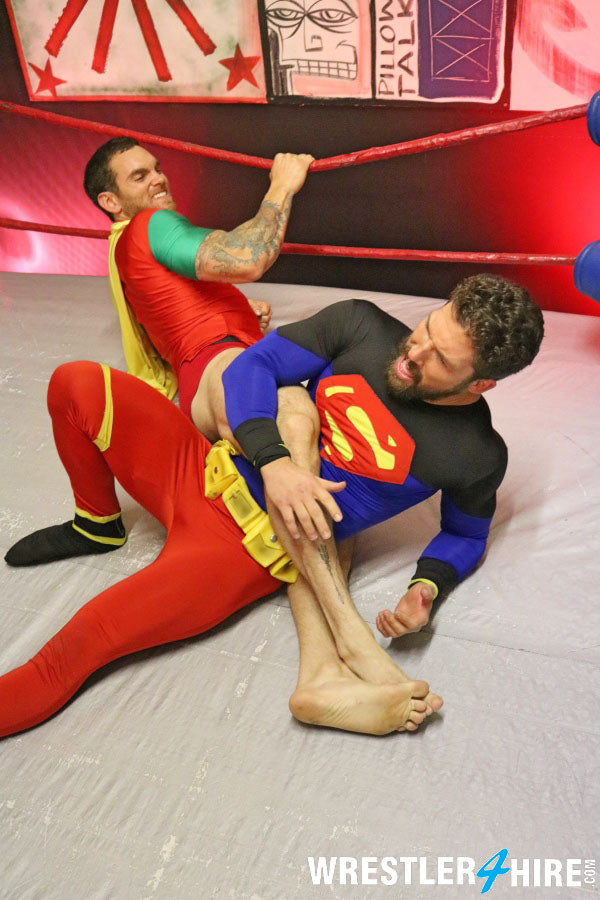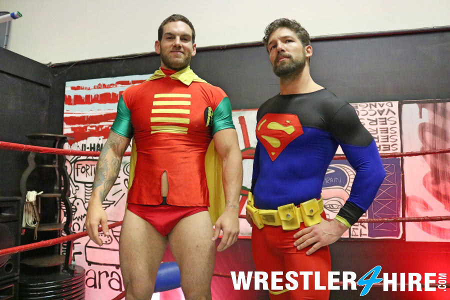 Let your superhero fight fantasies run wild with the help of two sturdy muscle men!