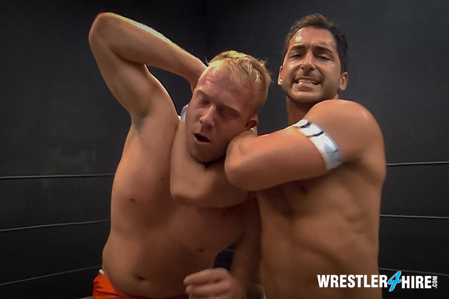 Blonde big guy Chico barely utters a word before Chase’s flawless arms enclose his head in a sleeper that somehow melts into a Chase rolls the big guy all over the mats like a sack of flour, closing in on his chin and wrenching his head backward in holds so agonizing and constricting poor Chico’s face turns crimson.