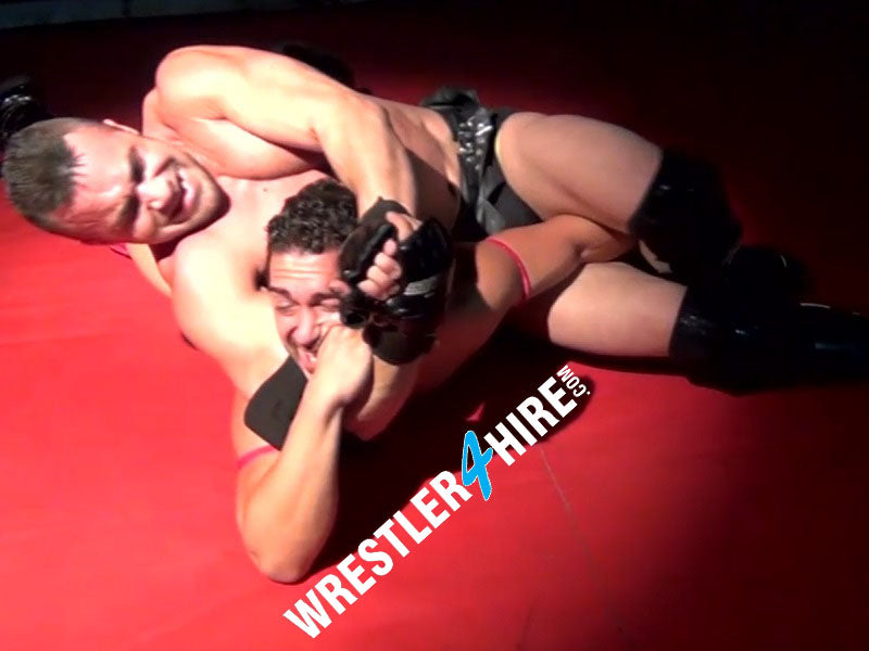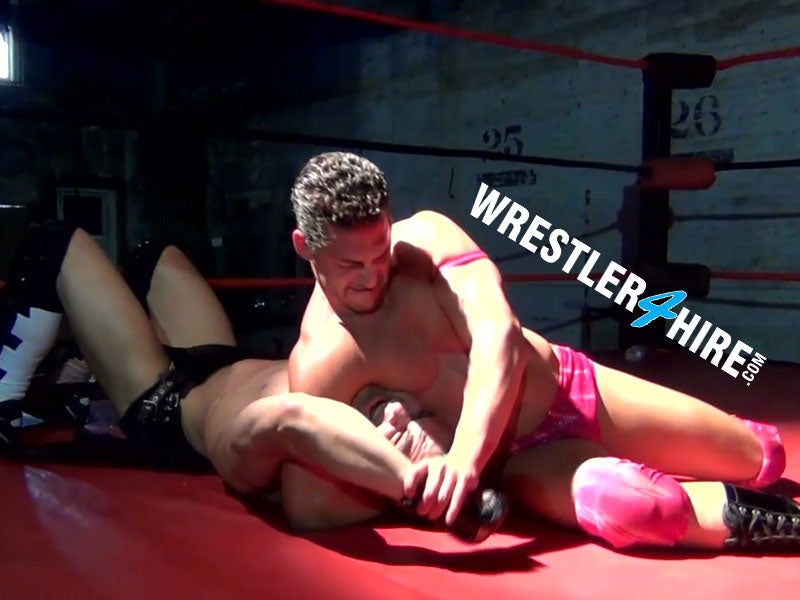 Aw yeah! Two hot as fuck fighters locking up like they have nothing to lose within the first five seconds of this vid! Swarthy Teddy Trouble is attired in full on Roman soldier regalia. We’re talkin’ leather lappets slapping against rockhard thighs and knee-high leg bindings. Chase Sinn, easily one of the most physically attractive combatants currently taking to the mats today, appears in, no joke, sparkling magenta trunks, knee pads, and arm garters! I mean, if Glinda the Good Witch happened to be one hell of a hot ass male wrestler, this would be the wardrobe of choice. It takes a lot of confidence to wear this shade, and Chase has it in droves.