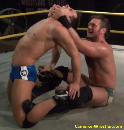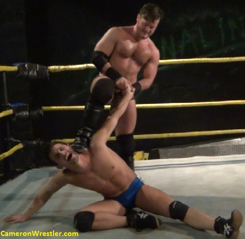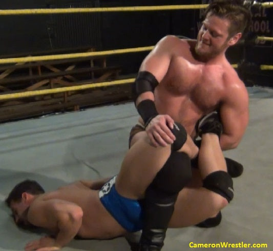 With sweat streaking his hairy chest and torso, the bigger, stronger, better man digs into Chastain, who sobs, begs, and cries like a complete and total bitch. Get ready for methodical finger attacks, legs twisted nearly out of socket, black boots standing on chests or stomping abs. Klein chokes the bitch with his own cris-crossed arms, applying one wrangling hold after another, and leaning back to luxuriate in the glow of that pretty Chastain face twisted in agony.
