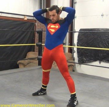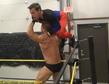 During a recent taping, as everyone was going through the stock-pile of speedos, tights and other gear, Chet pulled out something special. With gleam in his eyes, he pleaded to wear the costume. It didn't take any convincing, as I thought it would lead to a fun and steamy match...especially with Guido Genatto.