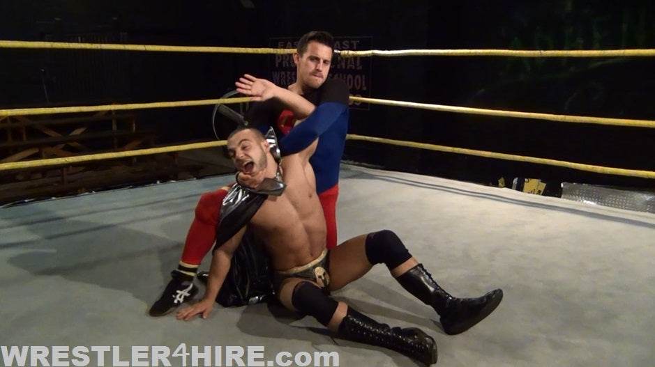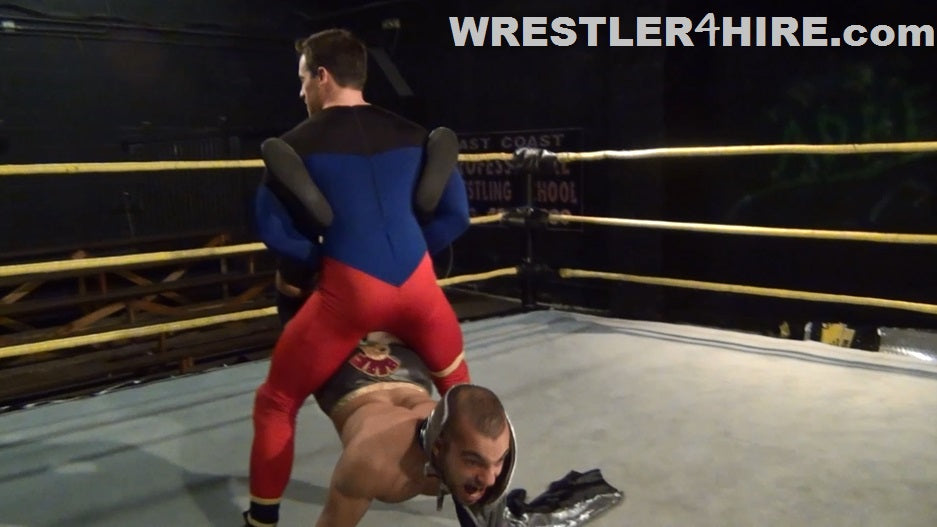 Chet Chastain portrays a baby-faced Superstud, looking almost unrecognizable in an ass-hugging full body super suit. Enter Will Favero in a shimmering mylar cape, calling himself Worst Nightmare. This super showdown proves once and for all that capes liabilities in battle as Chastain uses it to whip Nightmare from one end of the ring to another. Superstud claps the mylar man in a punishing Boston crab that leaves Favero floundering on the floor like a fish.