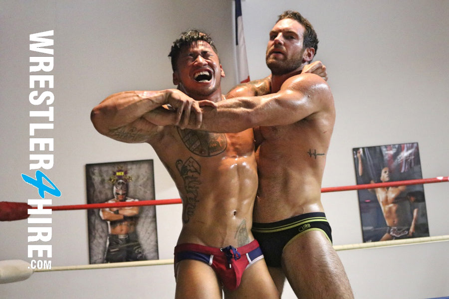 Wrestling newbie Christian Thorn is doing his yoga stretches in the ring when Chace enters and asks if they are in a yoga class or a wrestling ring. Talk about two very buff wrestlers, there isn’t 5% body fat on these two combined. Both are covered in huge muscles from head to toe and luckily for us, they love to show them off. Christian has gorgeous bronzed skin that’s been kissed by the sun, sexy tattoos, and a package that more than fills out his red trunks. Chace is taller, stronger, and has probably 40 pounds of bulk on the young stud. Chace flaunts his superior size and strength and shows off that manly and sexy hairy body.