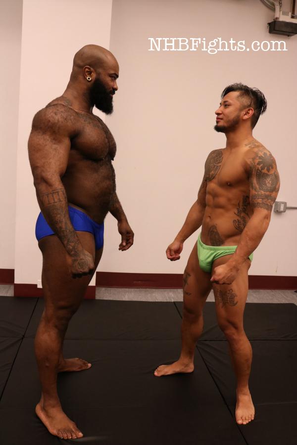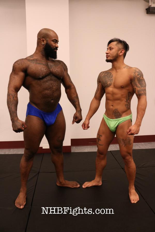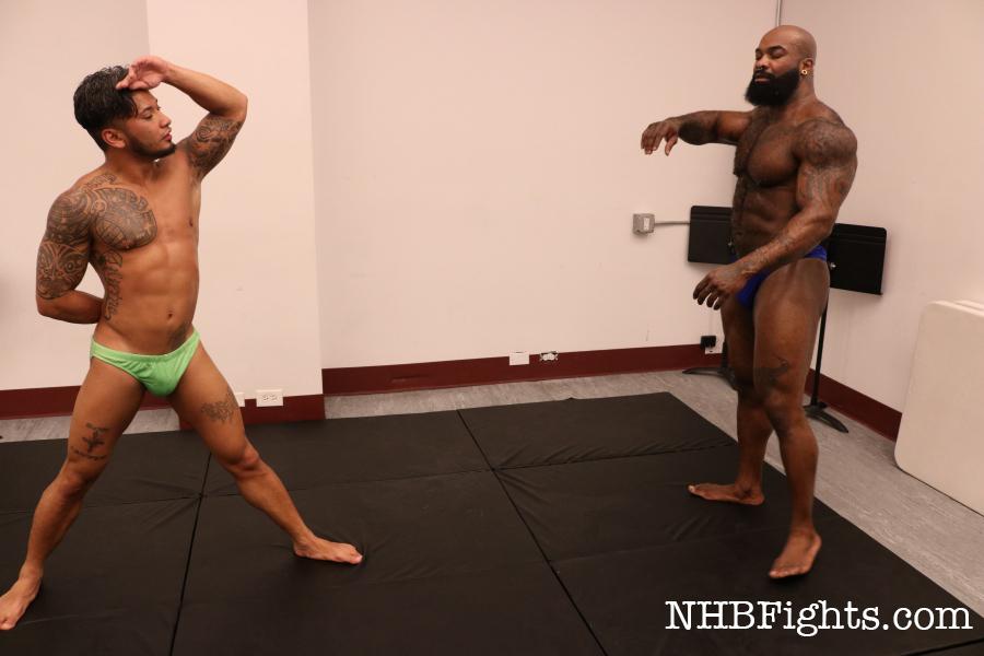 Daaaaang! That’s all you can say when you first get a load of Roman. This dude is big, hairy, and epically built. He growls and grumbles as he stretches out his massive frame, his muscles stunningly defined by an all-over coating of hair. How will Thorn compete with this massive, musclebound gladiator?