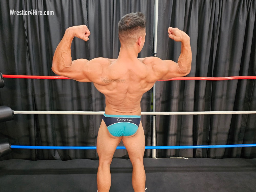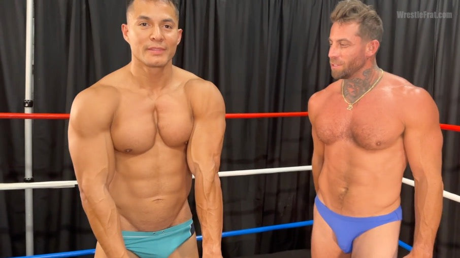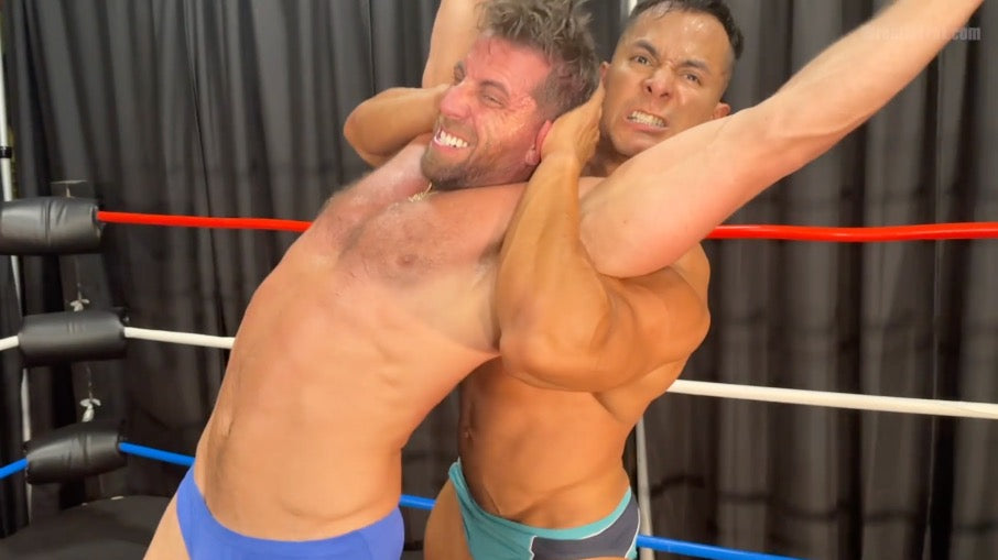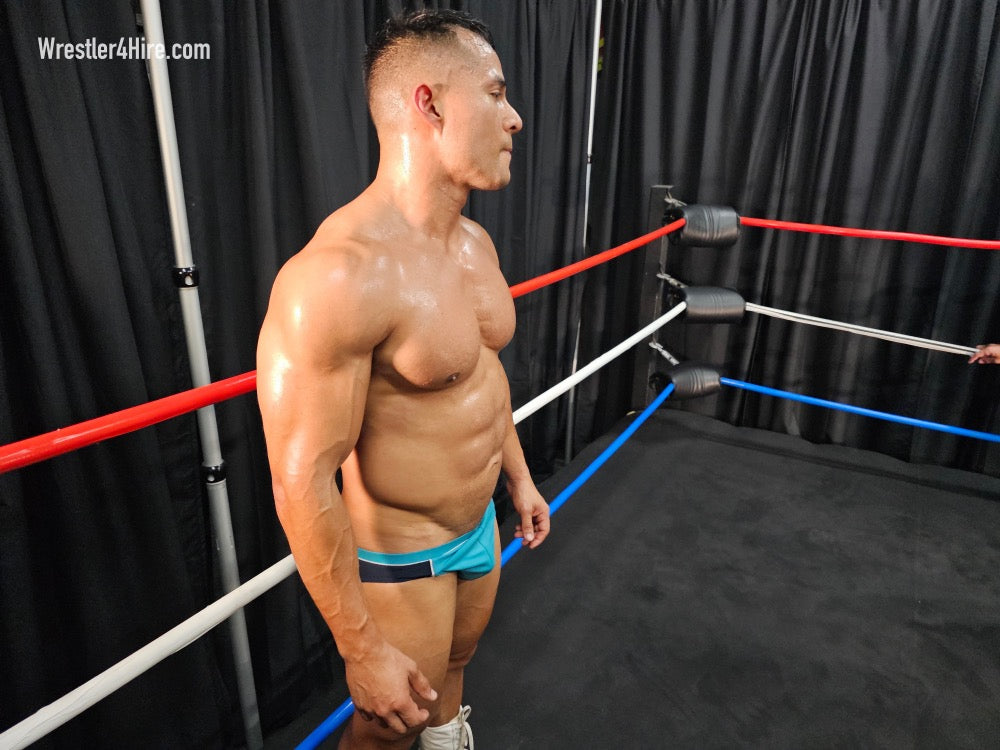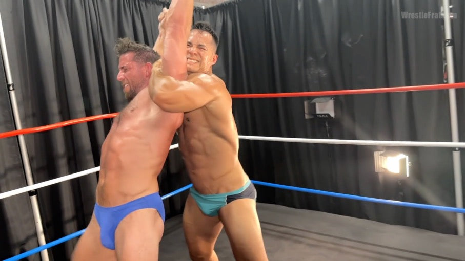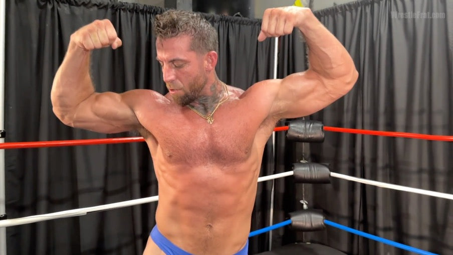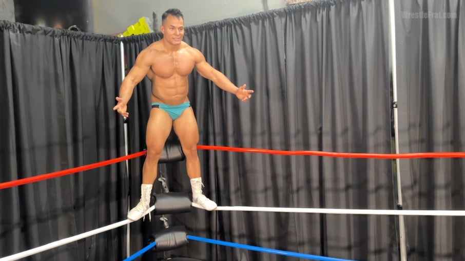 The Cuban Heartbreaker is in the ring posing for the camera. Enter a veteran of the underground wrestling scene - Cash. Cash has been around. His matches for W4H are lengendary (especially his oil matches.....seriously....check them out). He compliments the Heartbreaker on his physique and tells him to continue posing, but approaches him and gets a little too playful for the Cuban, who after a couple of "love taps" to his abs decides that it is time to actually get it on and puts Cash into a head lock. As I said though, Cash is ring veteran and it is not long before he has the Heartbreaker in a schoolboy pin, posing himself, letting the Cuban know, "this is my ring."