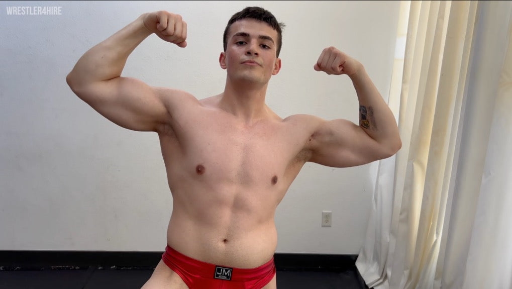 Cutie Cody, tall and lean, steps onto the mat in a sleek black thong that perfectly accentuates his slender frame. Opposite him stands Francisco, a wall of raw, sculpted muscle packed into a shimmering metallic red thong that catches the light with every movement. Their contrasting styles and perfect physiques make this a match to remember.