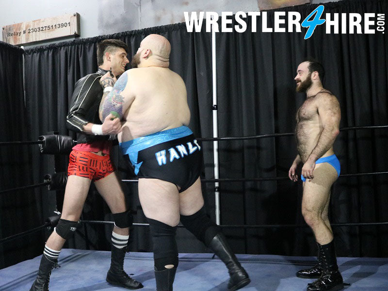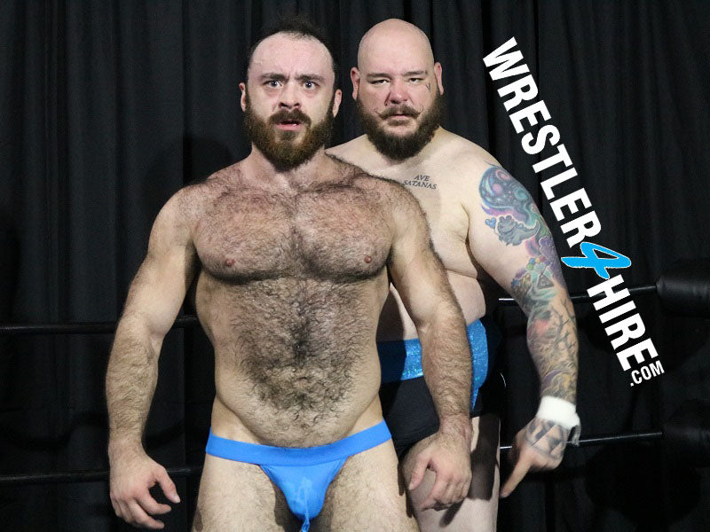 Dr. Maniacal has always been the super heavyweight monster heel superstar of this site, and as awesome as he always looks in his steampunk style goggles and smock (when he's ruthlessly demolishing hapless superheroes in his lair), it's a great change of pace to see him in his pro wrestling style gear...AND rockin' his waxed mustache look like an old school strongman! The Good Doctor never disappoints, he's up to his inventively sadistic ways here yet again, but this time with a brutal Muscle Bear tag-team partner in The Mighty Mr. Zuko! Love the dynamic between these guys, with Dr. M. as the crafty ring veteran mentoring his eager and sadistic young protégé/henchman. Zuko loves to flex and show off his brawny physique, and Maniacal encourages him nonstop. This poor jobber never knows what hit him as he suffers a lengthy and grueling beatdown at the hands of these two burly beasts. Hell, this tag-team could clobber the entire roster of W4H without even breaking a sweat...and I look forward to seeing them do it! If you love watching the bad guys double-team and totally trounce a totally overwhelmed opponent, this match is for you. "TEAM HAIRY AND SCARY" ARE THE CHAMPS!!!