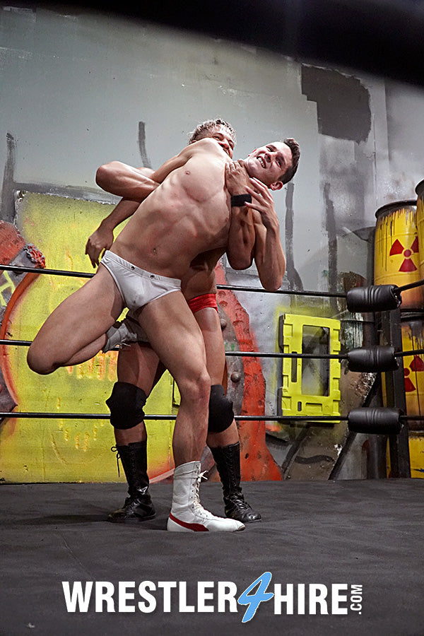 Dimitri is an energized, awkwardly sexy stud with a big mouth and a lot to prove. He arches his back, displaying a swimmer’s musculature and a prominent package. Enter Gabe Steele, the ultimate heel. Gabe glares and grins at the rookie, getting his attention quickly. How could anybody not notice Gabe Steele? Stakes seem to be set, although nobody can be certain what’s at stake. Dimitri enters into the match anyway, putting something at risk...but what?