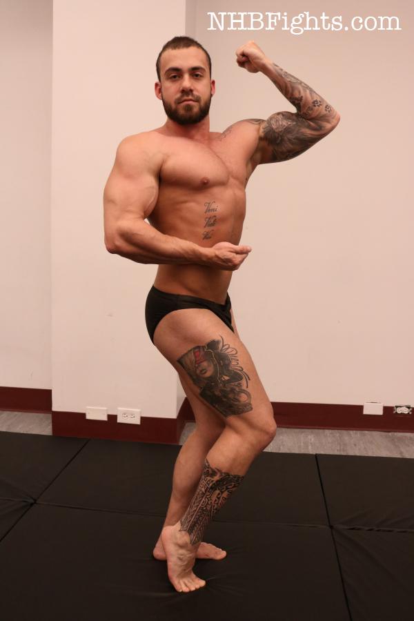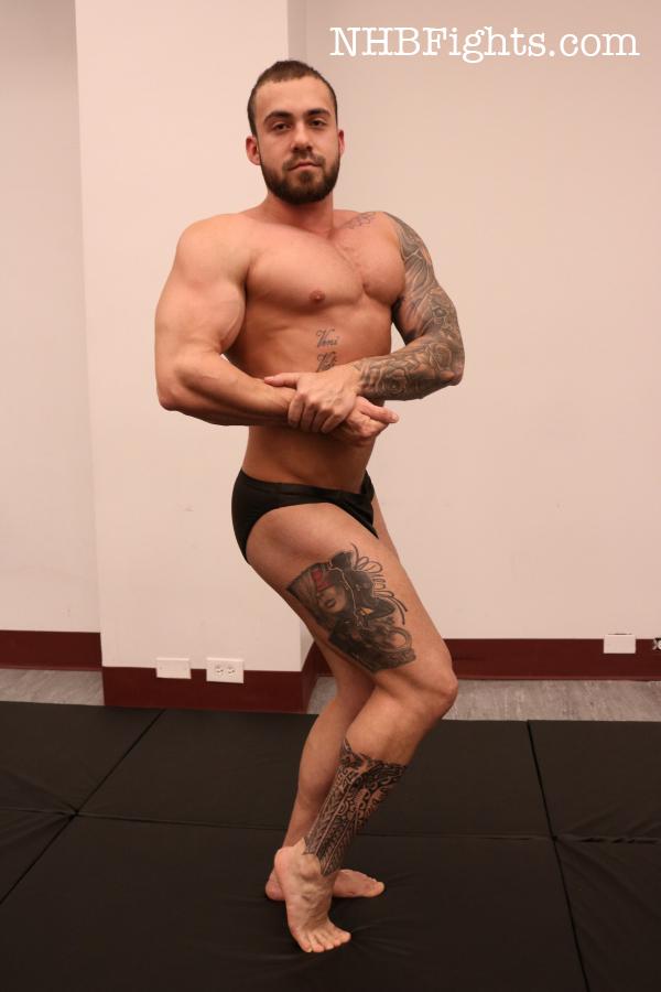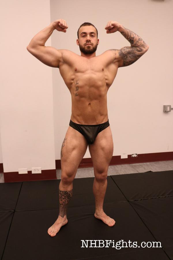 Ethan’s skills on the mats are indisputable. He stretches and balances with a purple bruise on one side of his face, which only makes him look tougher. But putting him up against the likes of Igor may test this gritty grappler’s resolve. Igor is hard muscle from head to toe. His glowing, golden skin ripples with muscles that come to vivid life as veins pop, pecs protrude, and rock hard thighs create a feast for the viewer. Ethan claps his hands, signaling for the match to start, and they are instantly at each other like a pair of wild dogs.