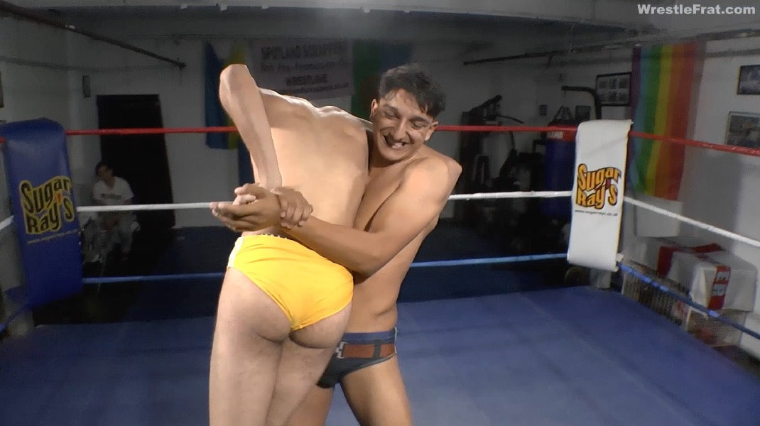 In this second entry of their battle from overseas, the pair are once again locking horns, Vaz hoping for the same result as their first match and Sam looking for some better luck than he had in their previous battle. As with their first contest, the two shake hands to begin the bout, but neither seems to be the one to release the handshake and only after some trying do the pair finally separate and begin their match in earnest. Sam grabs an early advantage, placing Vaz in bearhugs....standing beahugs, bearhugs on the mat, wherever and whenever he can get his arms around Vaz's midsection to deny the flow of air.