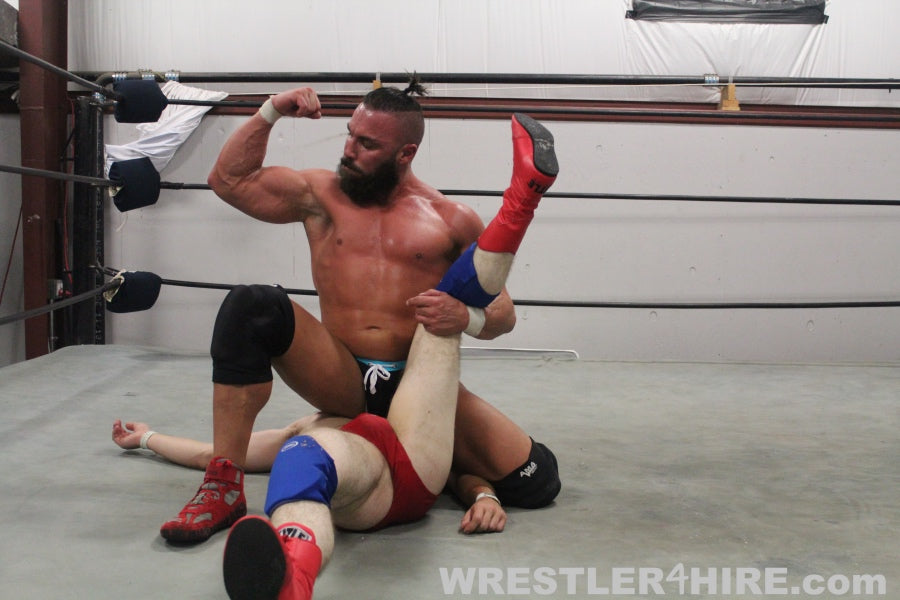 "This ain't your daddy's picnic!" roars the beastly LaCash, ripping into the twink with all the tenderness of a starving bear. Watch as that pasty face turns red as a cherry due to the squeezing, strangling, and relentless torment. Figure-four head scissors have little Johnny Jobber listing any and all phallic foods he enjoys stuffing his his mouth. Everything from popsicles to cucumbers to Polish sausage gets named-dropped, inviting LaCash to shove his fingers in that hungry mouth while offering Johnny the camel clutch of his life.