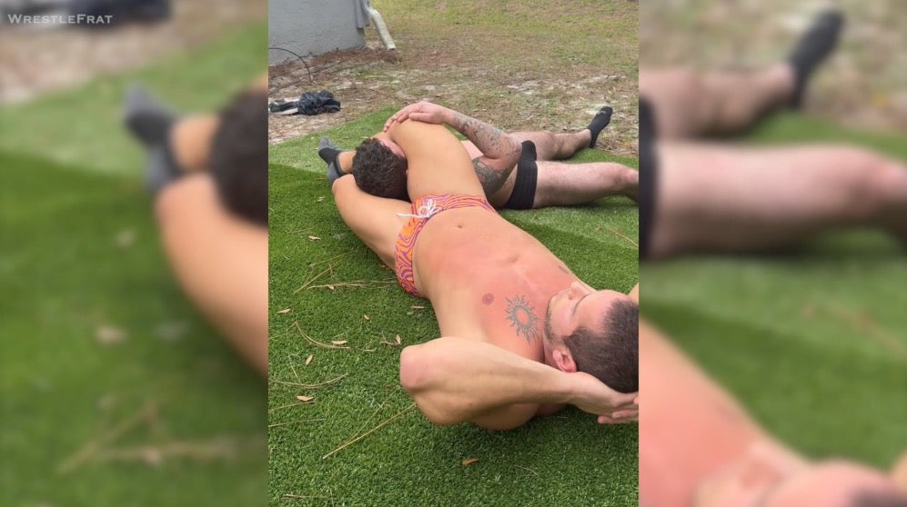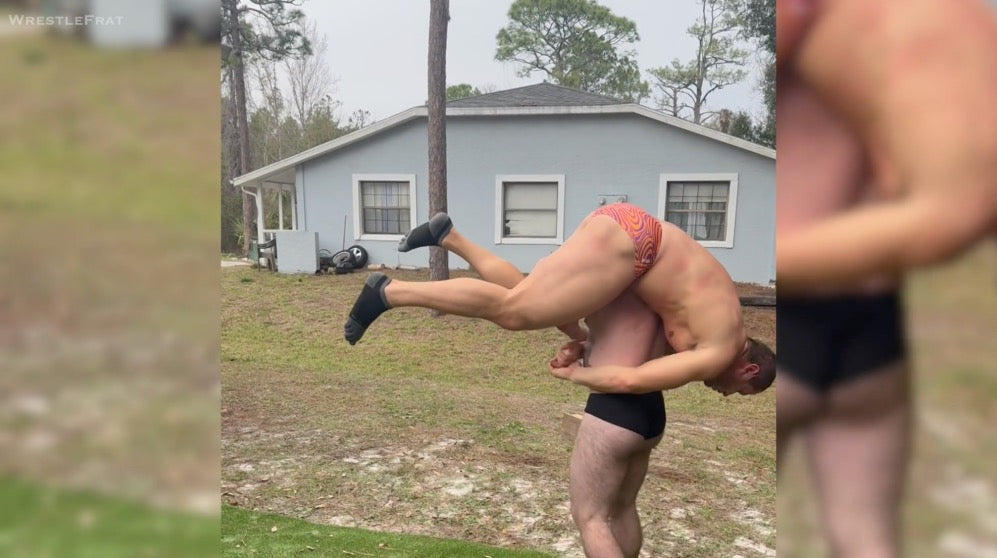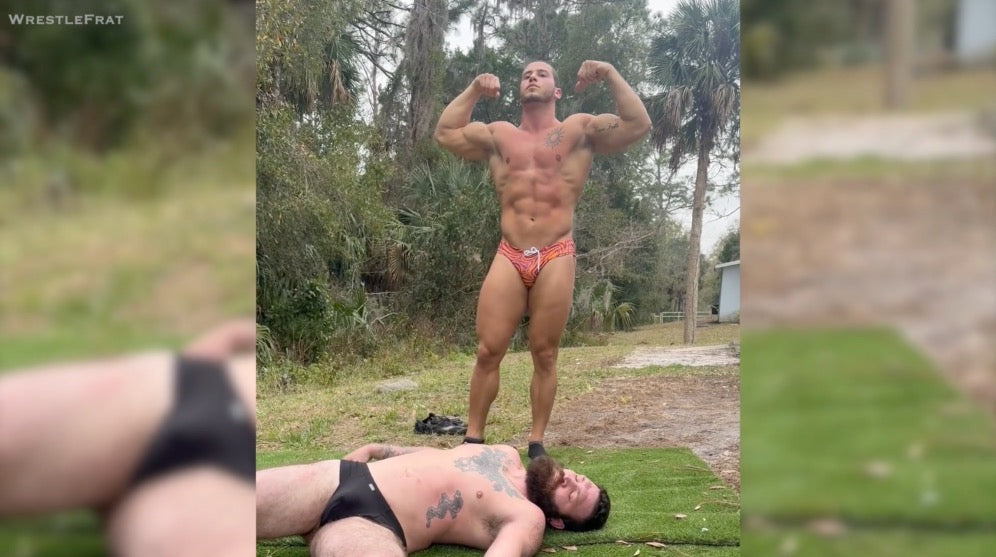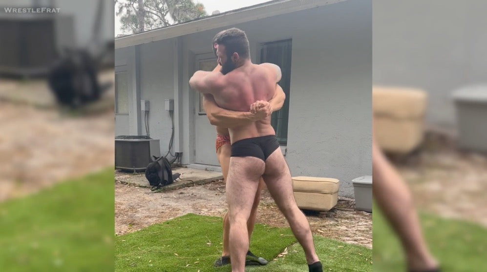 There were no fancy holds here, just raw, living room-style action with full nelsons, sleeper holds, and bear hugs. The Florida woods providing the perfect backdrop for their back-and-forth action.