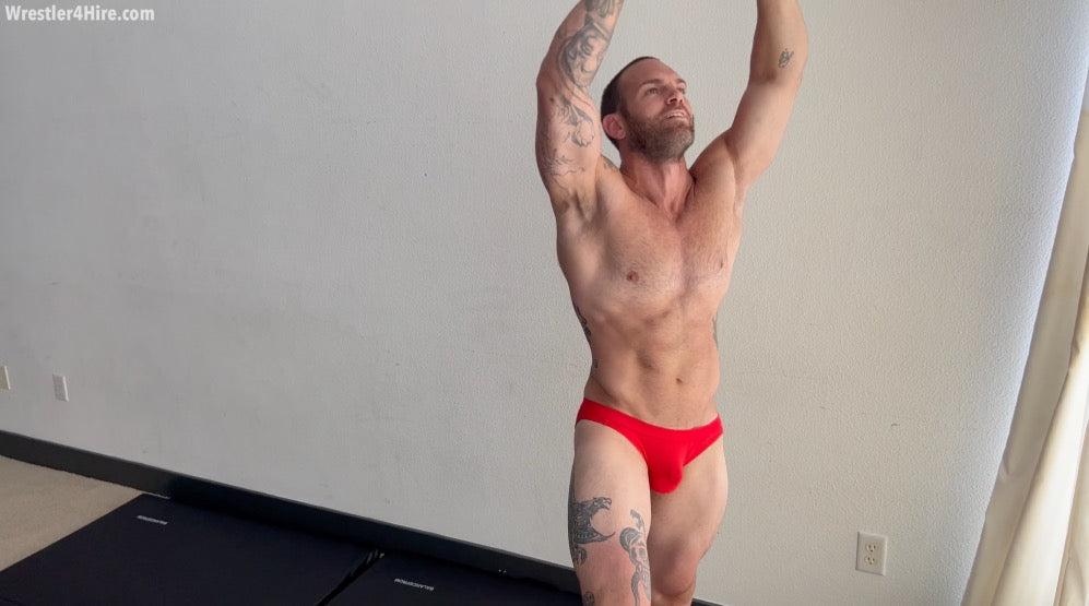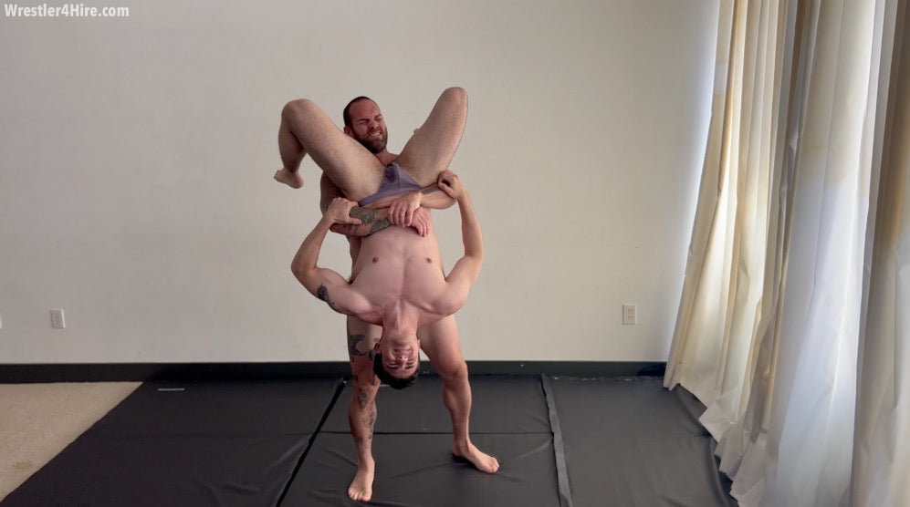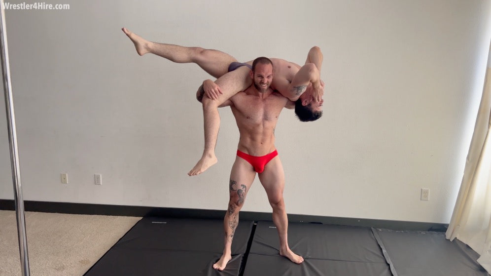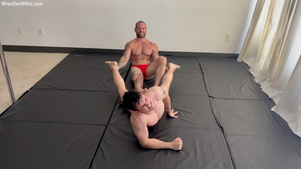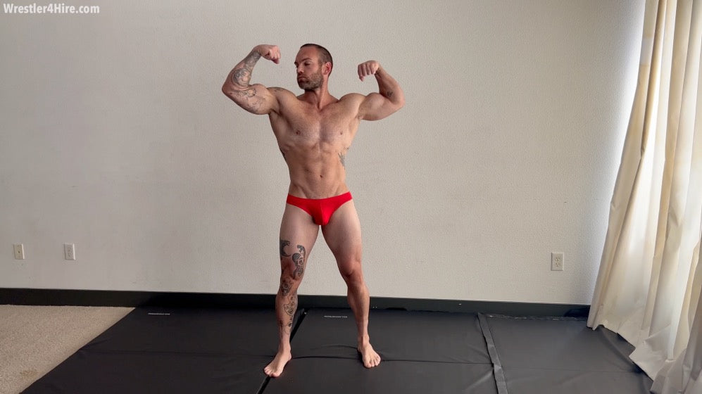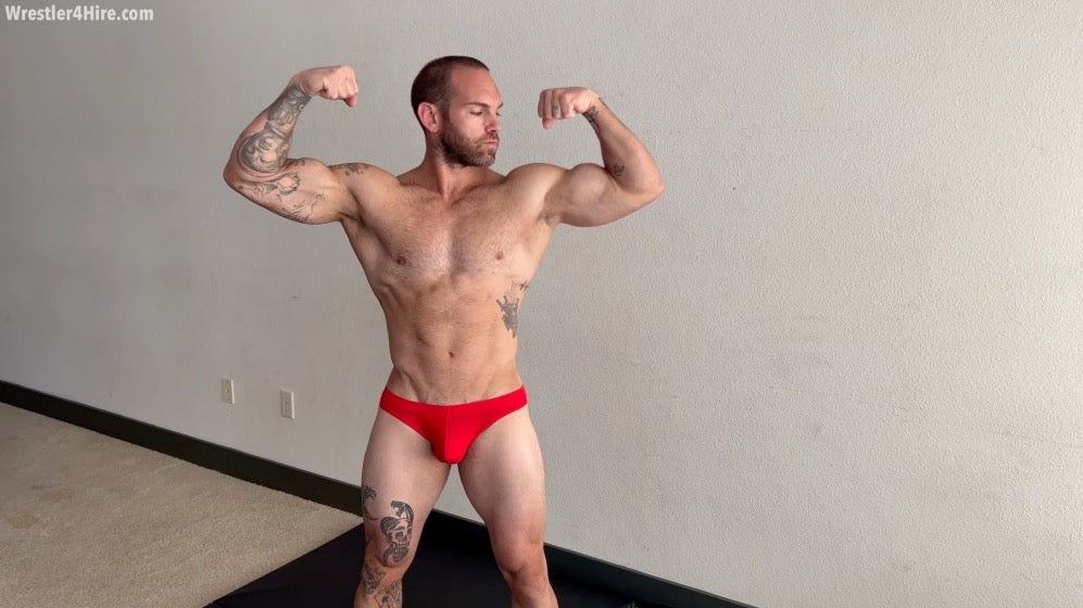 Chace LaChance returns to the mats, older, hairier, and more muscular, and meaner. Chace has no problem dominating Francisco despite his own muscles and youth; that is, until Chace cockily poses for the camera allowing Flex to sneak up from behind. A series of OTK Backbreakers and Dragon Sleepers has the muscular legend in serious trouble. Great action with the camera taking you right along with every flex and hold and submission. Great video product and service as always.