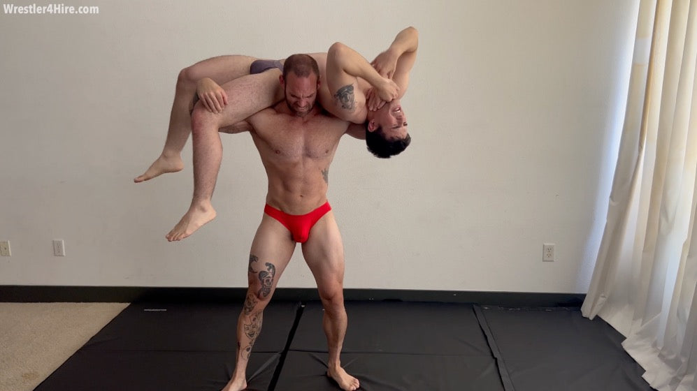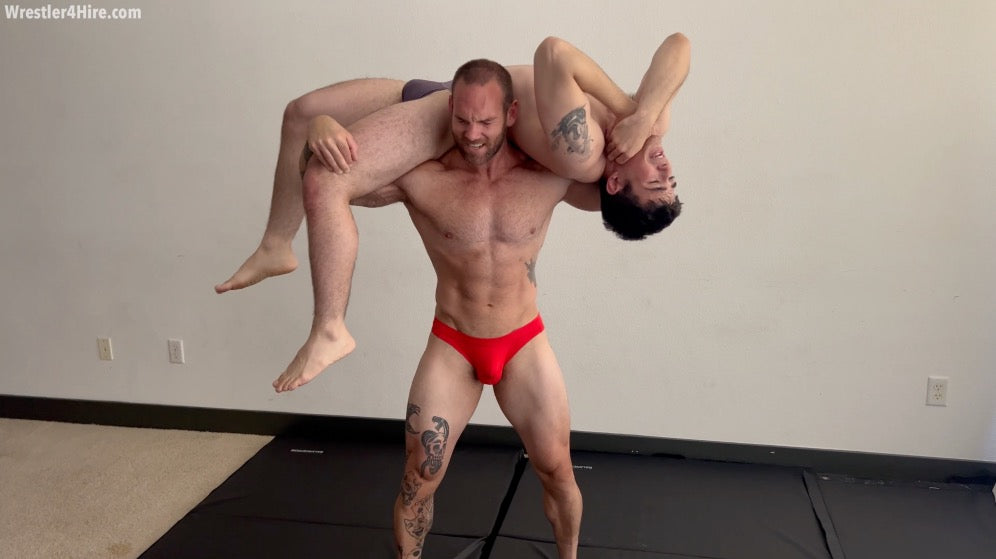 But Francisco isn’t done yet. While Chace is busy posing, Francisco sees his chance to turn the tables, surprising Chace with a brutal bear hug of his own! The rookie even pulls off a masterful backbreaker, showcasing the skills he’s been perfecting in training. Suddenly, the tables have turned, and Chace’s powerful body is now on display as he’s the one stretched and punished.