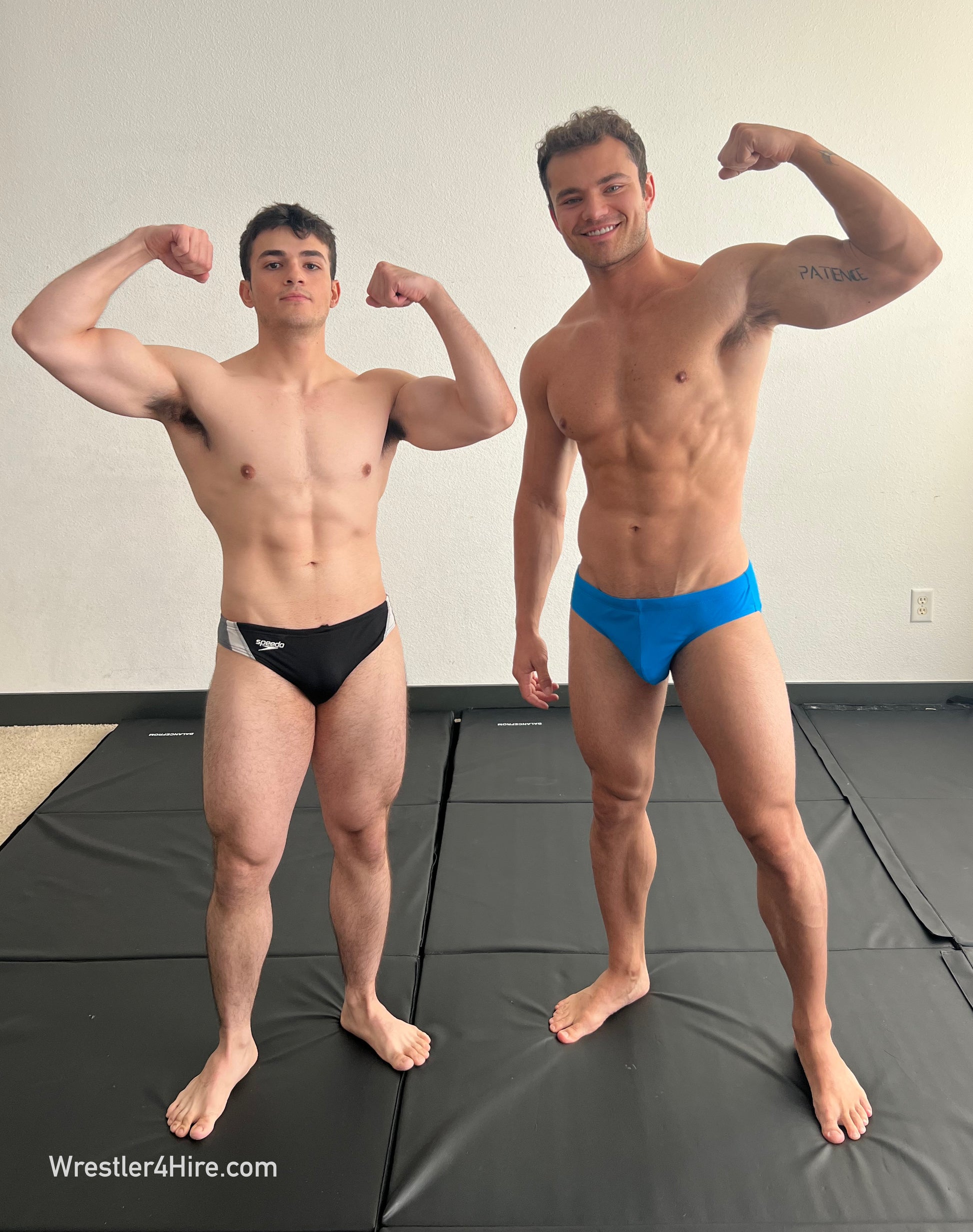 Travis and Francisco haven’t wrestled since their school days. Francisco’s been bulking up and packing on muscle—Travis notices, but being the cocky, trash-talking jock he is, he can’t resist a jab: “It’s a good start.” Francisco fires back without missing a beat: “It’s enough to kick your ass.”