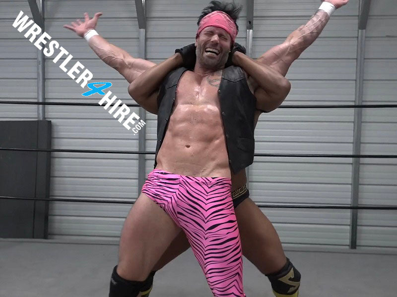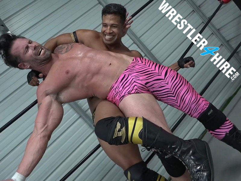 If you have never seen Joey Nux raised in a choke hold, or placed on someone's shoulders for a fireman's carry, then this is the video for you. You will see Joey thrown around the ring, stretched and clawed in ways that he has seldom been stretched and clawed, and tied in the ropes for Gabe to have his way with his abs. Likewise, Gabe finds that he is in a battle the likes of which he has seldom seen, having to absorb and try and defend against a power onslaught from Joey that seems unrelenting.