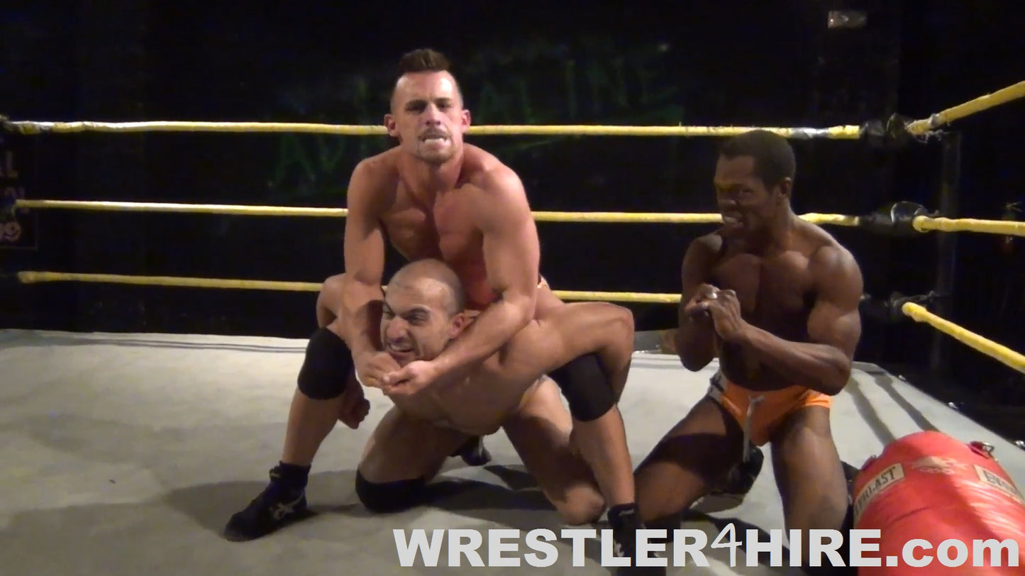 Find a better, hotter, nastier, more entertainingly athletic wrestler than Guido Genatto. Just try. This dude’s an animal with edge, ferocity, and a seething sexiness that cannot be denied. Enter Alvin James and Chet Chastain, two men on a mission to systematically destroy every superior man they encounter. Gluttons for punishment, they issue a challenge to a rabid Genatto.