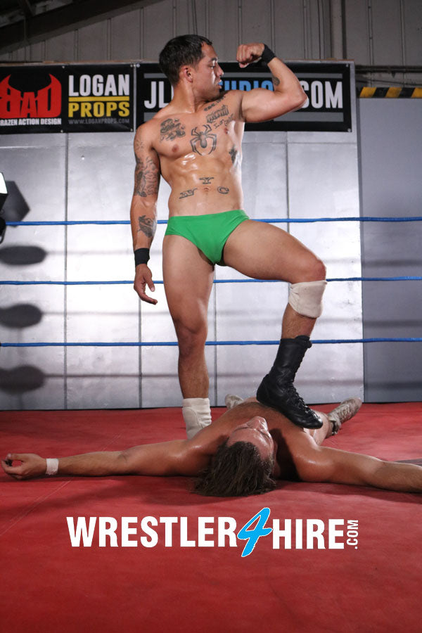 “Who’s your DADDY!” roars Danny, while clutching Van Acker’s balls with animalistic domination. Del Toro loves Van Acker’s screams...he loves applying a rough, painful wedgie...he even mimics Van Acker’s sobbing cries of pain like a schoolyard bully. But it’s not all catty, dirty moves here. Del Toro’s well versed in pro slams and Boston crabs, and he knows how to marry the world of pro wrestling perfectly with the world of exotic, erotic, trash-talk fueled fighting.