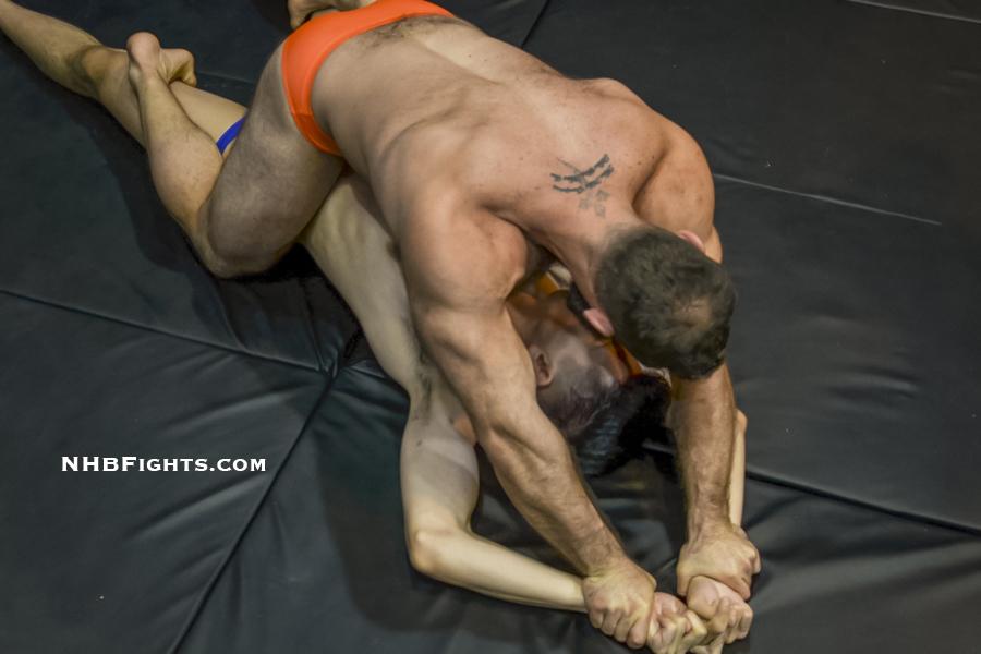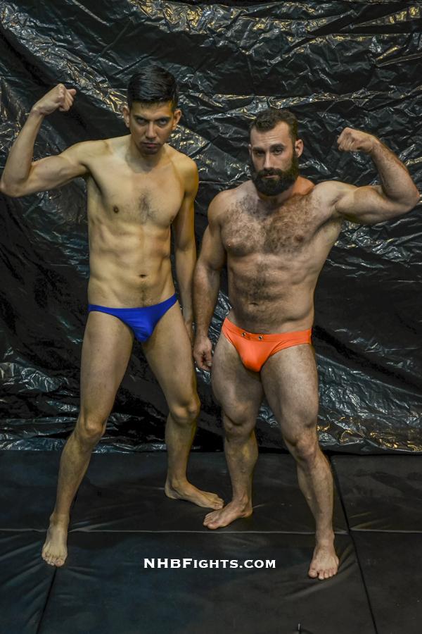 It’s hard to believe Paricutin is actually a head taller than Jax...until they face off. Two very, very different bodies in an honorable no holds barred battle. The initial lockup is like poetry, between the slapping skin and the messy initial tumble. Jack straddles the lean, pretty boy, making his arms go above his own head to expose a nest of coarse, black armpit hair. Jax gets to his feet, bringing his opponent with him, stretching him backward in a nelson that Paricutin is somehow slight enough to wriggle out of.