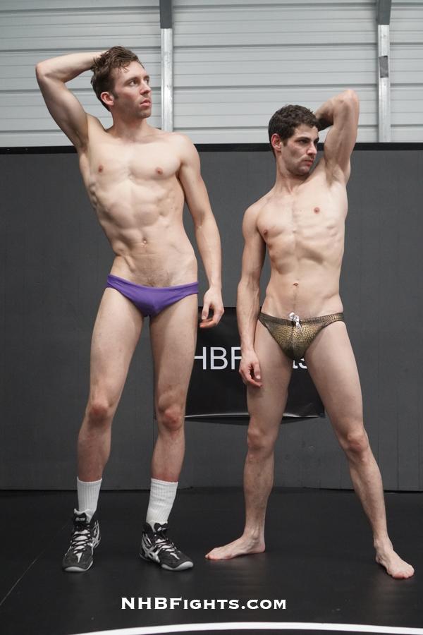 John Wolfboy is easily one of the most beautiful grapplers in the business. His recent match against Ethan Andrews is one for the books. Nathan FX shares Wolfboy’s leanness, stretching is a barely there lavender speedo, as well as sneakers and socks. Something about Nathan FX in this setting feels off, like he might be too sophisticated for a legit no holds barred battle.