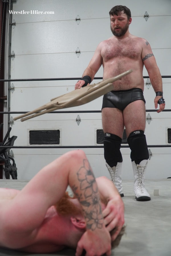 And the steel chair factors into the remainder of Forrest's torture. His ankle, an arm, his head and more are all place within the folds for Jonny to stomp away at. Bodyslammed onto the steel chair delivers pain to Forrest's back the likes of which I doubt he has ever experienced. In all honesty, this video has the most sadistic, cringe worthy blows of any video you are likely to see. The welts and red skin on Forrest is not makeup, it is not CGI, they are real, and they hurt just watching the video. Don't pass this video up.