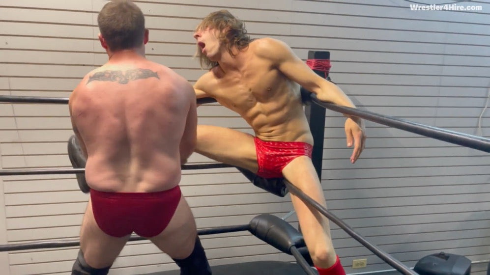 After some time where Nathan is impressed with his own knee length socks, the pair lock up in a test of strength, which Nathan barely wins since Jonny decided to go to the bottom rope to be on the same level as Nathan. However, as Nathan will soon find, his domination of Jonny is about to end there, never to return. Jonny knows how to delivering punishment, and when he focuses on a particular part of the body, you can bet that his opponent will feel continuing, constant and devastating pain for as long as Jonny wants to deliver it. And wanting to deliver it to Nathan Jonny does!