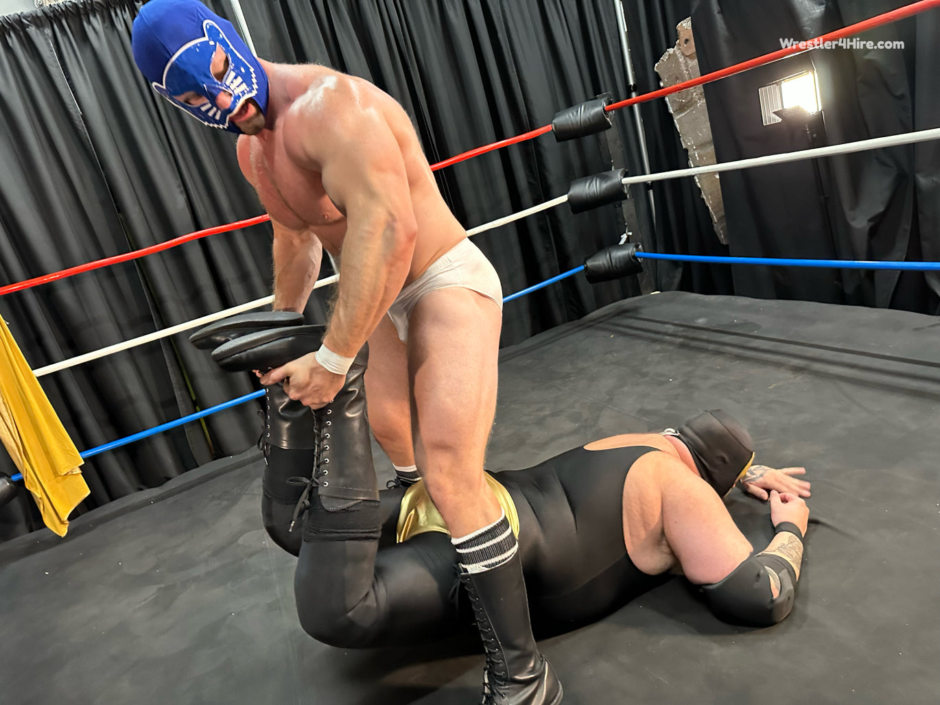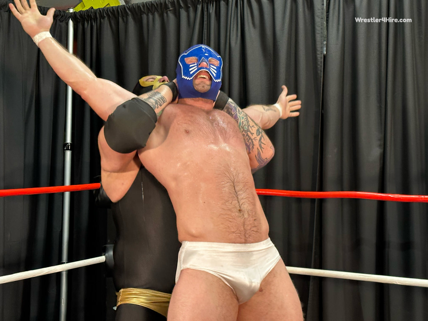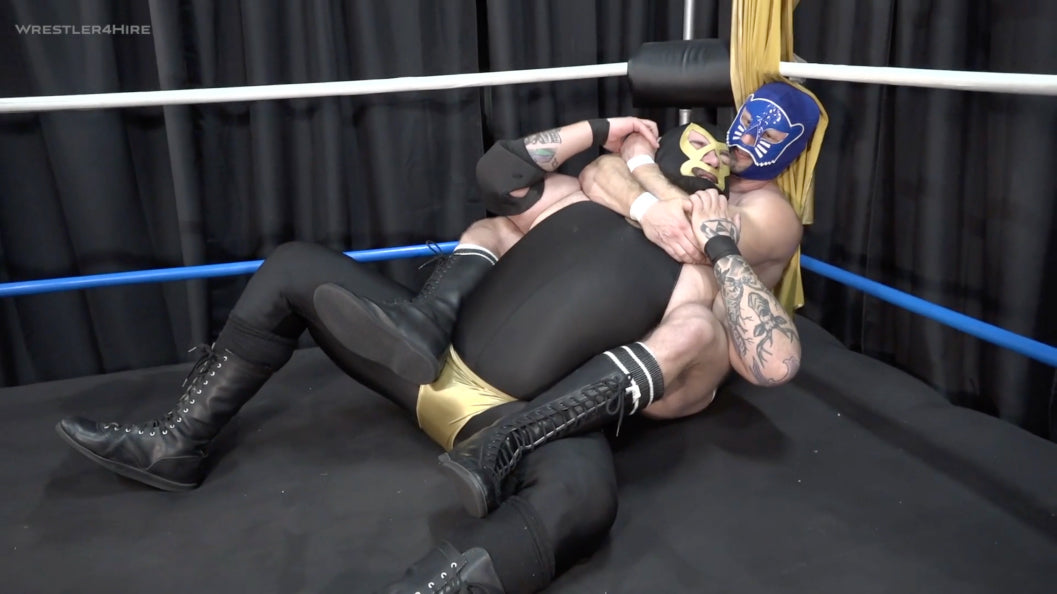 Golden Terror has a message for all of his opponents in the new year - he is going to take them all apart, humiliate them, punish them, and for those who dare to wrestle him in a mask, expose them for who they really are by unmasking them! Enter into the scene JT Panther, an extremely impressive specimen of a man, clad in white wrestling trunks and a blue mask, who informs Golden Terror that whatever plans he may have for his other opponents, that fate will not befall him as he means to defeat him int he squared circle. Can the chiseled Panther succeed in taking down the large Terror?