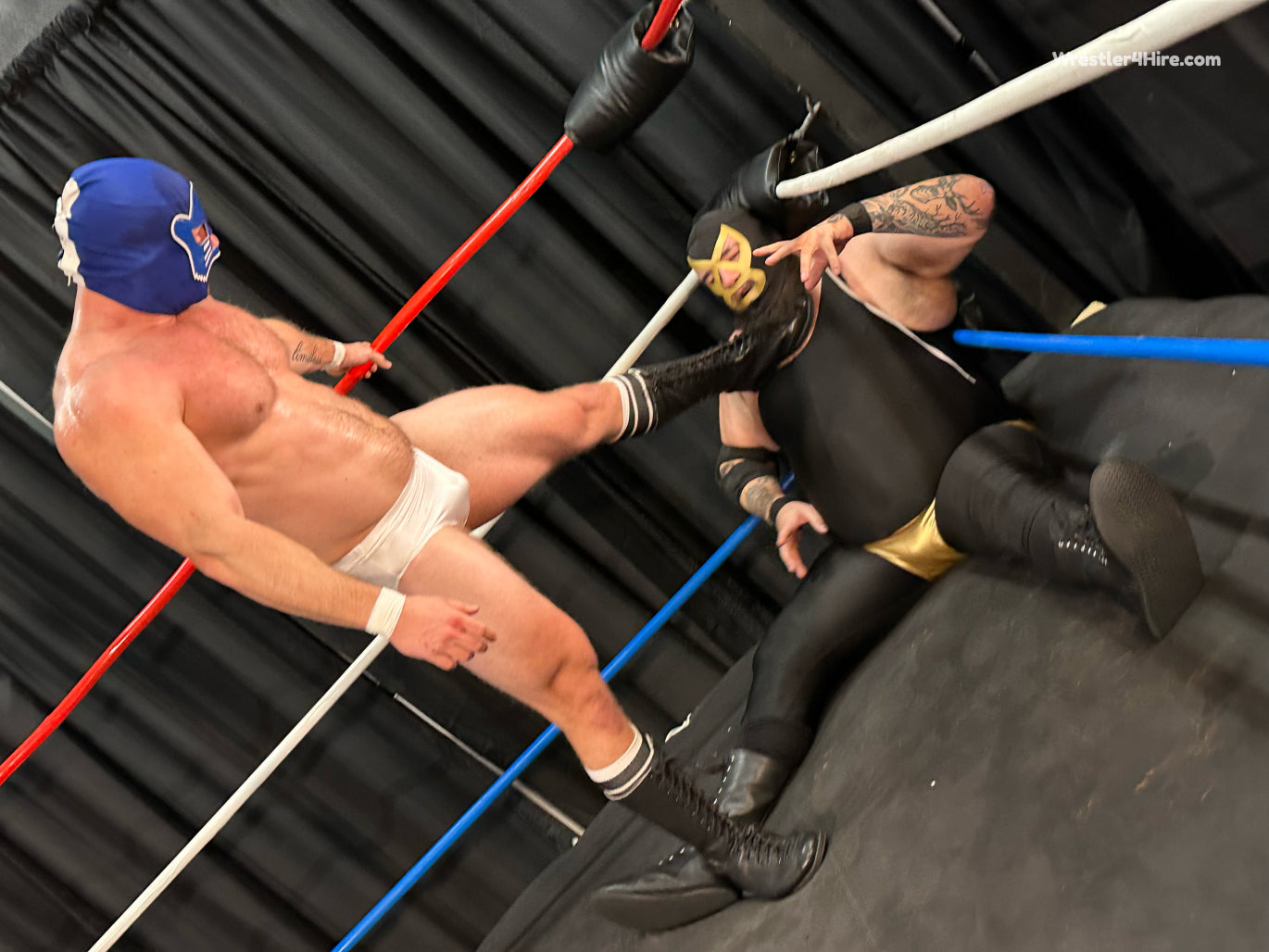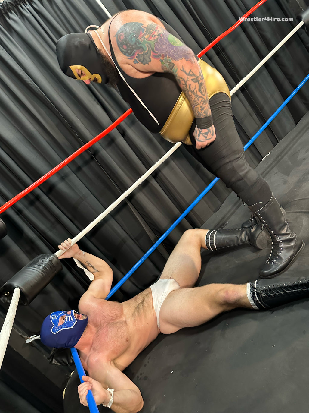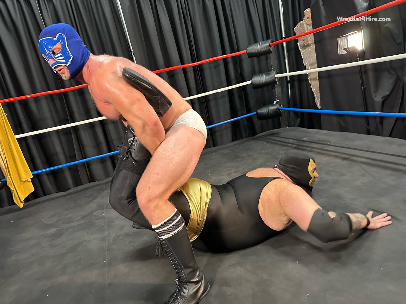 Golden Terror has a message for all of his opponents in the new year - he is going to take them all apart, humiliate them, punish them, and for those who dare to wrestle him in a mask, expose them for who they really are by unmasking them! Enter into the scene JT Panther, an extremely impressive specimen of a man, clad in white wrestling trunks and a blue mask, who informs Golden Terror that whatever plans he may have for his other opponents, that fate will not befall him as he means to defeat him int he squared circle. Can the chiseled Panther succeed in taking down the large Terror?