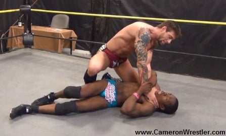KARN is powerful and unrelenting. From sleeper holds to blatant chokes. Alvin is crushed by the strong thighs and arms of the now roused badass. It is mostly a one-sided showing from KARN that has Alvin regretting his fetish.