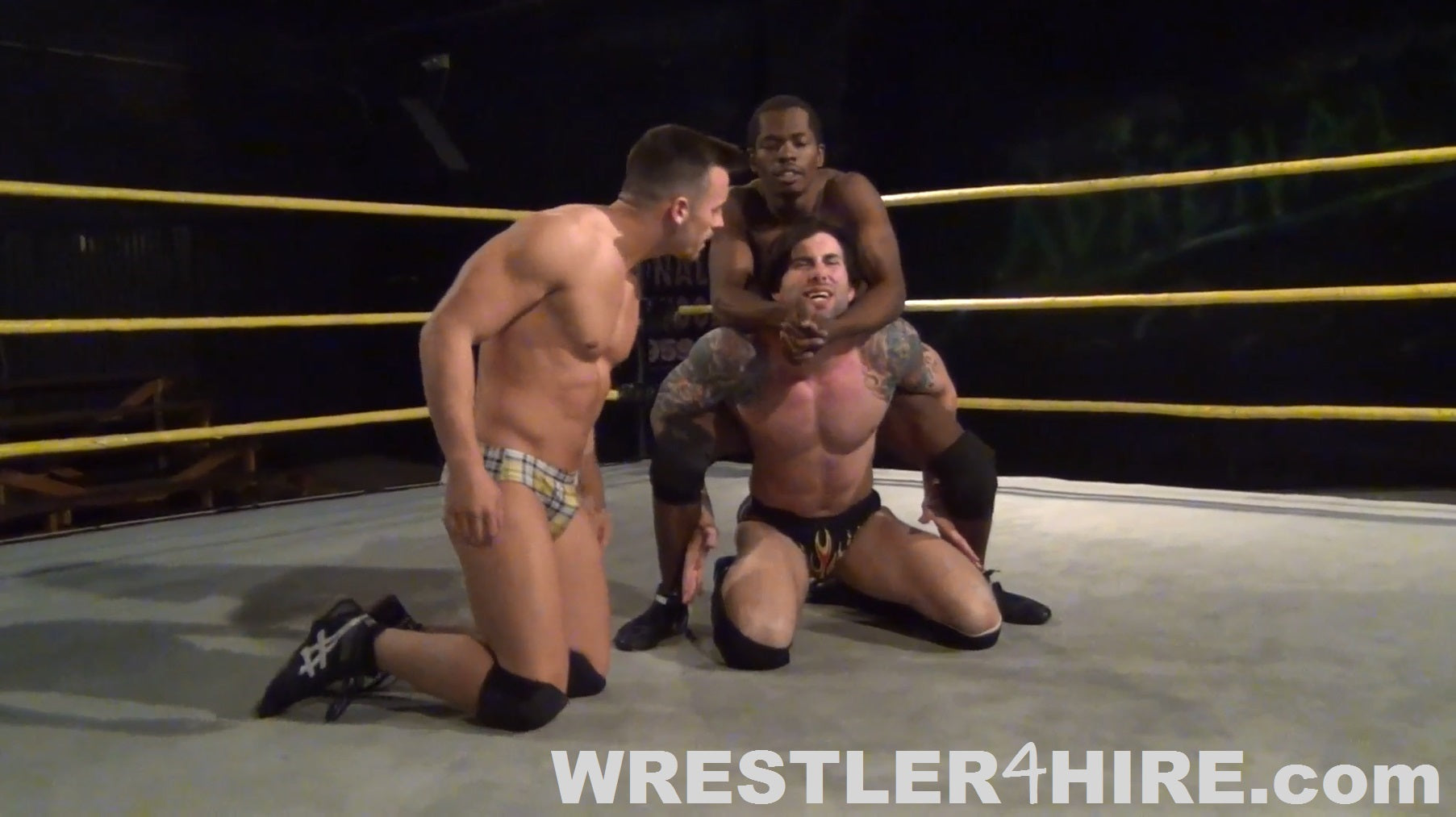 Brace yourself for a cock and ball twisting, kicking, crushing, smashing, bashing battle that is beyond anything we’ve filmed before. You want to see the superior man beg at the hands of two dumbass dudes with an obsession for Karn’s crotch? This is the match for you, as Chastain and James wear the better man down until he’s literally begging for release. If Karn’s nuts aren’t safe, you best hold on to yours!