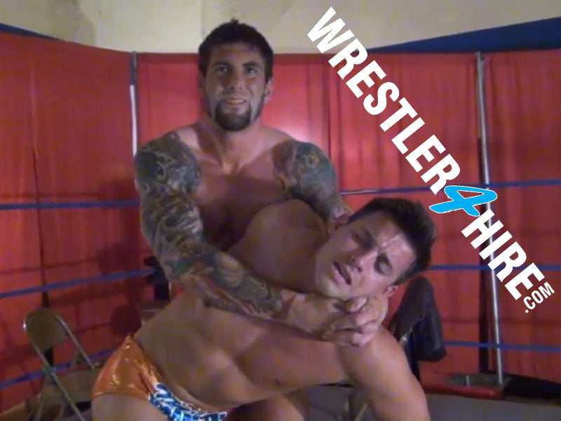 What follows is a 30 minute clinic in how to take down and humiliate another individual. Karn repeatedly puts Chet in hold after aching hold, making Chet sing to be released. Abdominal stretches, figure four leg locks, bearhugs, choking with a tie and back breakers galore serve to not only break Chet but also serve as another opportunity for Chet to sing for his release.