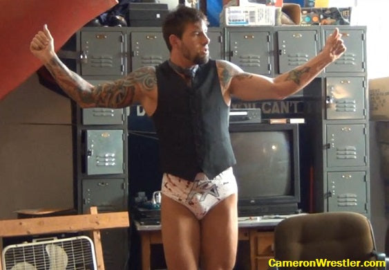 Who knew brutal badass KARN had musical theatre aspirations? Attired in vest, tie, and wrestling gear, KARN displays his showmanship while rehearses a jaunty little dance number. Flash LaCash, a literal Guy Smiley, admires KARN’s fancy-dancy moves, inviting the tattooed terpsichorean into the ring to teach him a few of his signature moves. Midway through the dance class, KARN goes from Baryshnikov to brawler when his knee makes contact with Flash’s unprepared abs. KARN is gonna show Flash some moves alright…