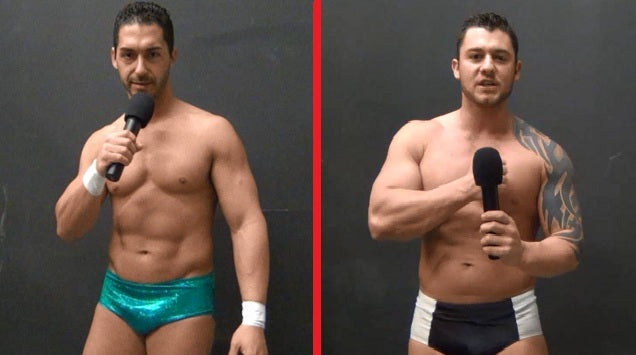 This is classic pro wrestling format for this FIRST-TIME anywhere match. Each starts with a brief interview targeting their opponent then onto the one-ups, some trash talk and finally a strong lock-up that sends them off to the races. A back-and-forth match with lots of classic holds and innovative torture. Bodyscissors, Figure fours, boston crabs and various sleeper holds...plus more. Lots of close calls.