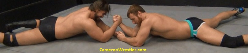 Hartley and Cooper engage in some friendly arm wrestling in the middle of the ring. These guys are big, brawny, and pretty much unbeatable, especially when paired up. Enter Ethan Andrews, that slender, drawling boy next door that nobody should ever underestimate. Andrews gets in on the arm wrestling, only to be put to shame by Cooper.